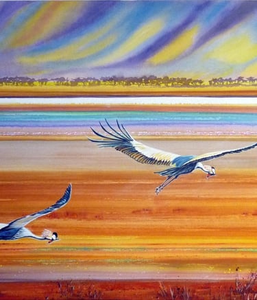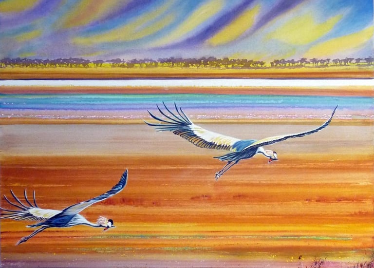 Now dedicating more time to painting, she creates figurative works—landscapes, people, and wildlife—inspired by travels to her homeland Tanzania and her Algarve home. "As an artist I am constantly on a voyage of discovery. A blank canvas is an immediate challenge. Tubes of paint are a toy-box," she explains, driven by light and emotional reactions to capture stories in every scene.